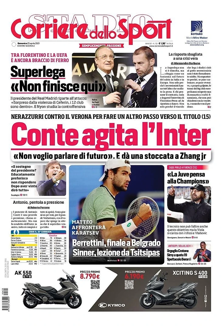 Конте направлен на цель. Заголовки Gazzetta, TuttoSport и Corriere за 25 апреля