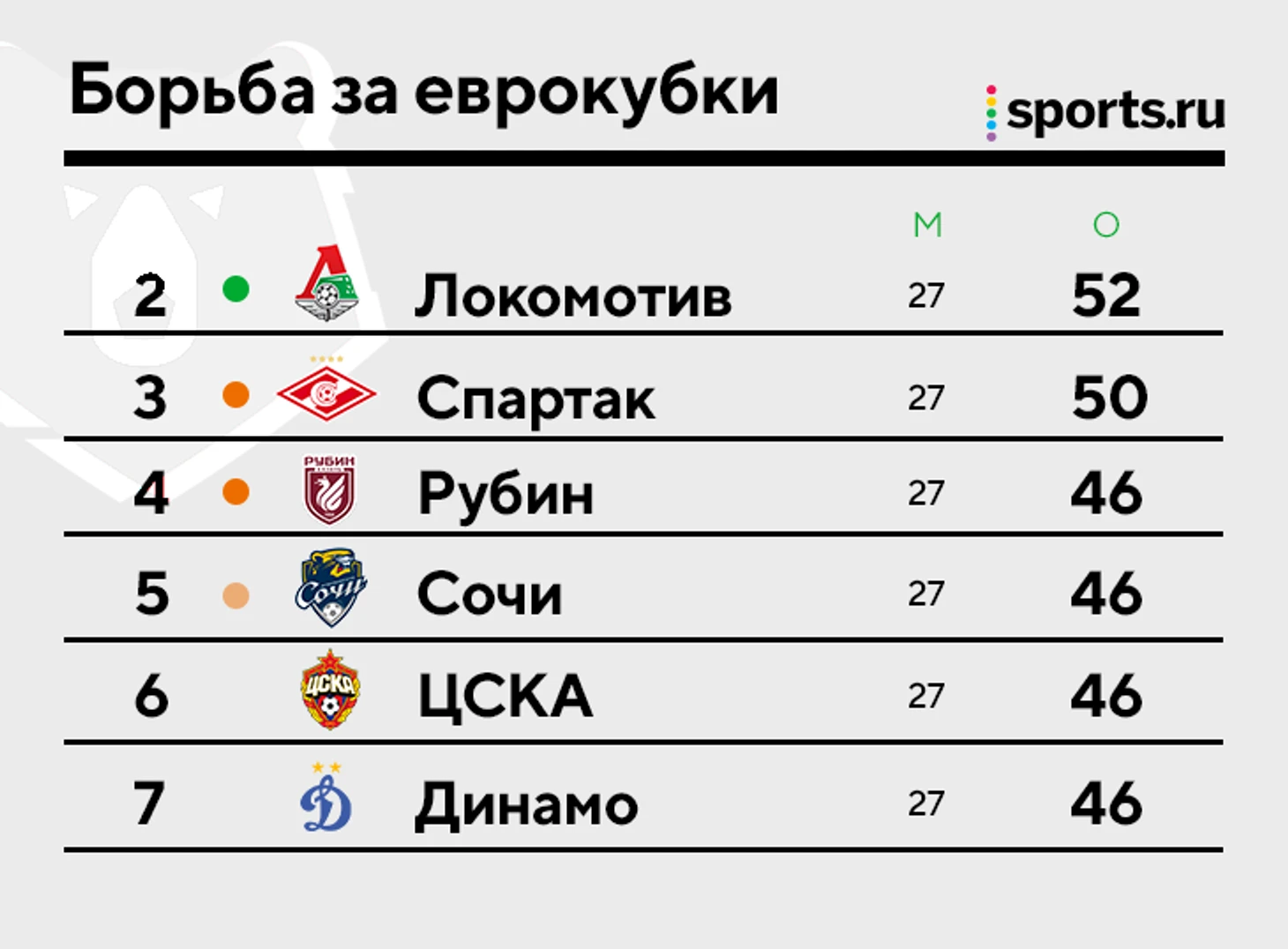 «Рубин», «Сочи», ЦСКА, «Динамо» – по 46 очков