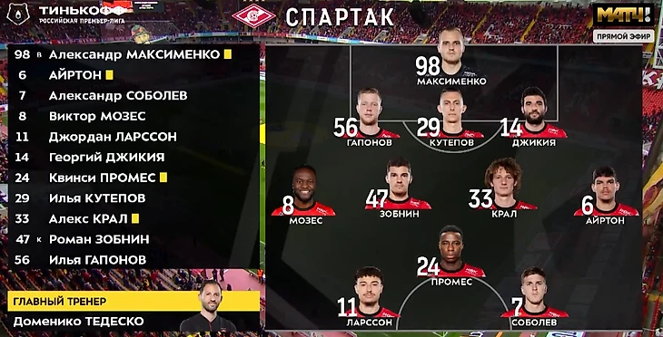 У Тедеско более агрессивная модель 3-4-3 с активными флангами, без дисквалифицированного Жиго и травмированного Павла Маслова. Дублёр Илья Гапонов удивил надёжной игрой и это дерби может занести себе в актив.