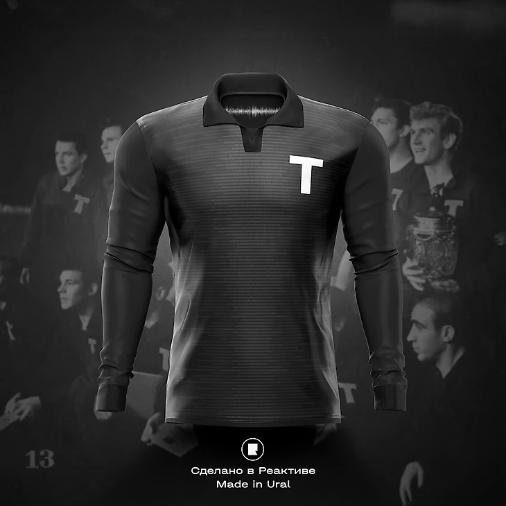 Ещё одна отсылка: полностью черная футболка с длинным рукавом напоминает выездной комплект исторической формы 60-х — самому успешному периоду клуба.
