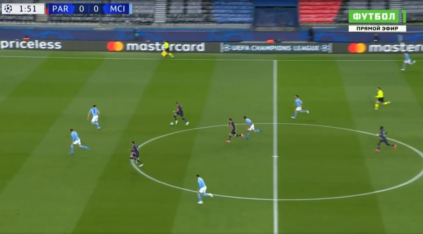 На 31-й минуте желтую получил Жоау Канселу, что по идее должно было ослабить левый фланг обороны горожан. Верратти продолжал наращивать темп - отдавал пасы через себя, закинул черпачком на оставшегося перед воротами Мбаппе (француза подвела техника), а на 41-й минуте вместе с Флоренци разыграл простую комбинацию, устроив небольшой пожар в защитных порядках "Сити".