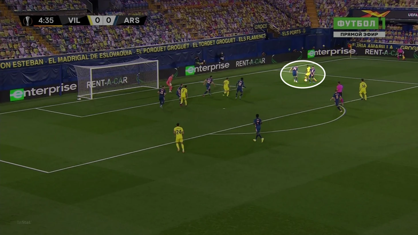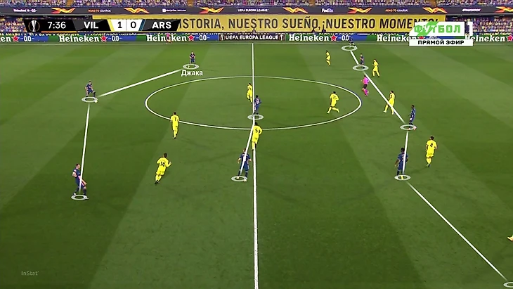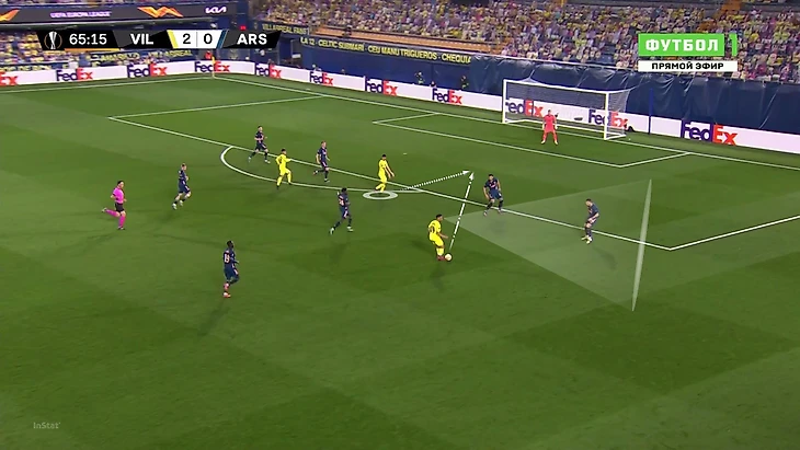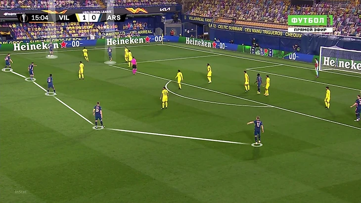 За первые полчаса «Вильярреал» провел всего 2 атаки с ударами, но обе были следствием преодоления прессинга через уязвимые зоны (фланги, которые Артета умышленно оставил более свободными – там футболистов не накрывали сразу, а выдвигались на них позже). Первый провал прессинга – быстрый гол «Вильярреала». Второй – угловой, который привел ко второму мячу.
