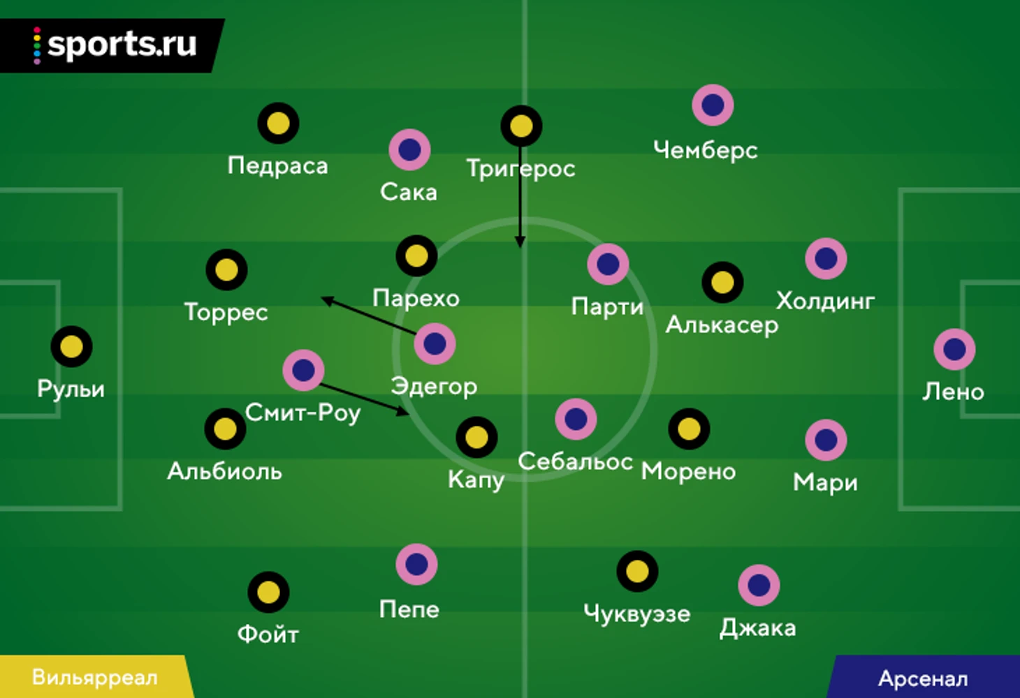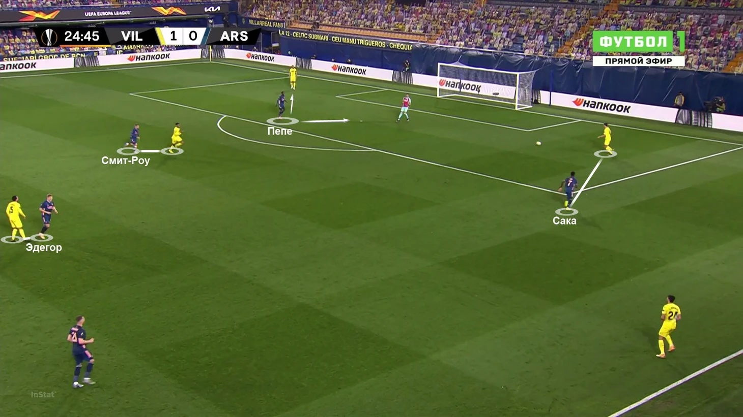 Чтобы организовать такое давление, потребовались очень смелые позиции вингеров – именно Сака и Пепе сужались и давили на центральных защитников «Вильярреала», а Смит Роу с Эдегором стартовали против опорников: