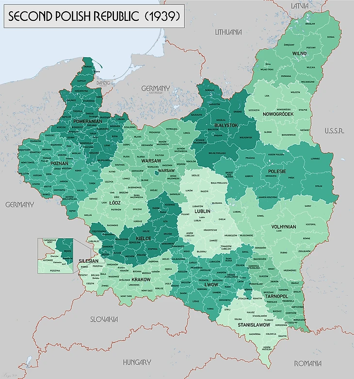 Волынское воеводство было вторым по величине в Польше того времени, Львовское самым населенным, Тарнопольское третьим с конца по размерам.