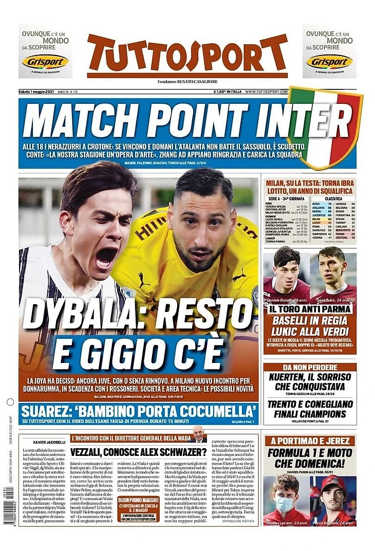 «Интер» в Кротоне (18:00 CET), чтобы закончить шедевр. Это Скудетто, если выиграют и завтра Гасп не победит «Сассуоло». Тренер готовит праздник: «Закончить сезон с титулом было бы действительно невероятно. Я передал своё видение». Вчера первая встреча с Чжэном. Отсутствует Эриксен, сыграет Сенси.