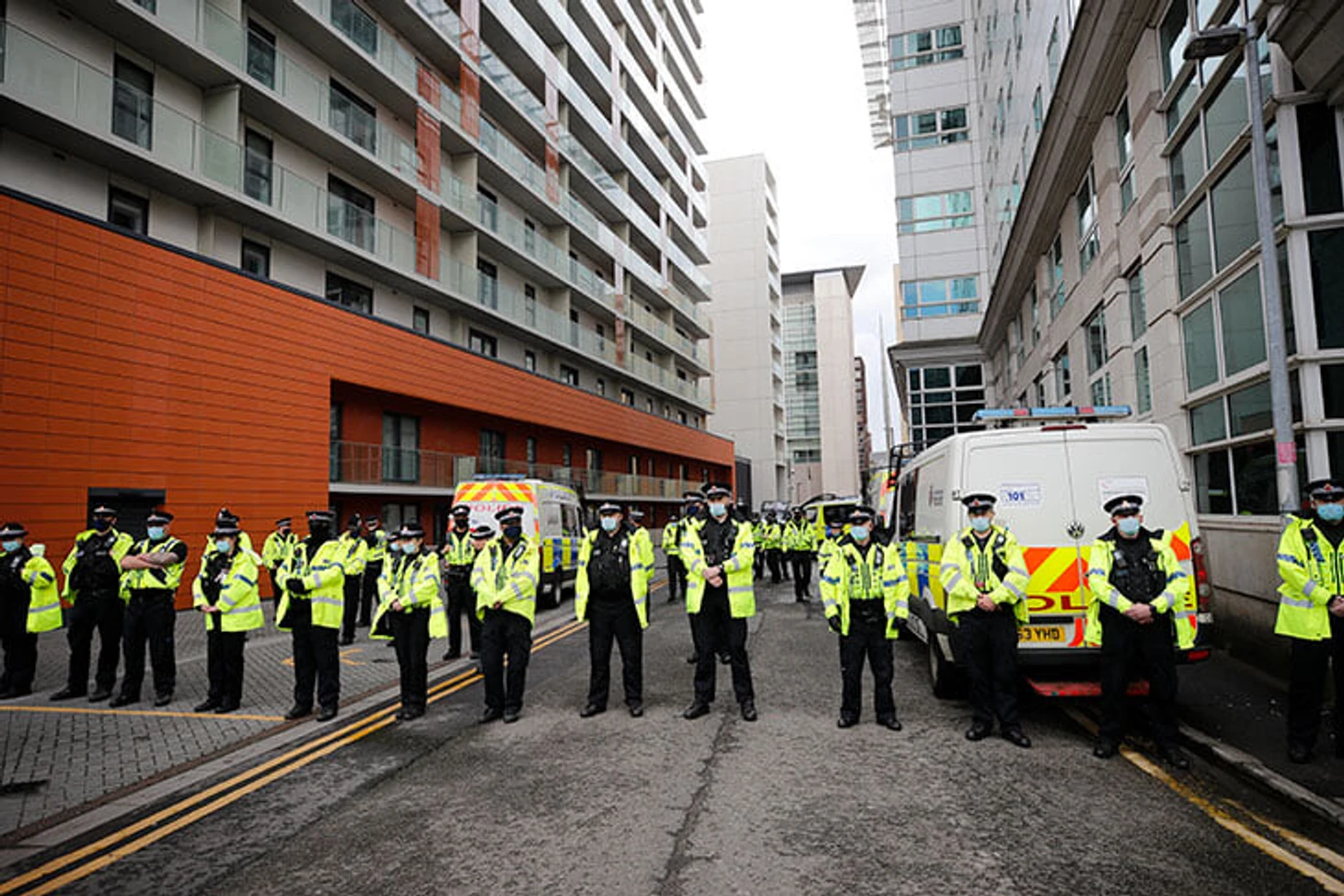 Полицейское оцепление у отеля Lоwry, в котором перед матчами останавливается «Манчестер Юнайтед»