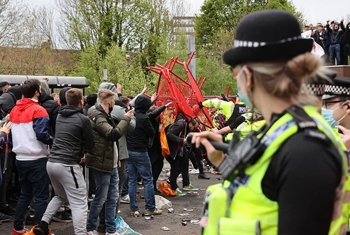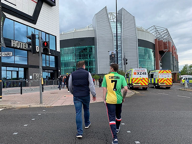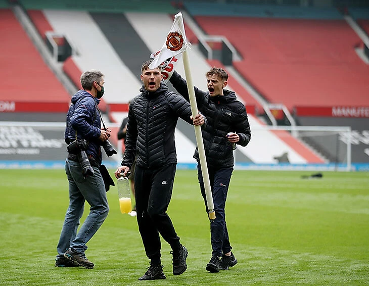 Стюардам и подоспевшей полиции удалось оттеснить фанатов с поля (отчасти помогли поливальные установки), но уже через час несколько человек появились на верхнем ярусе «Олд Траффорд»: спрятаться на пустом и почти не охраняемом стадионе легко, и в толпе журналистов всерьез обсуждали, как много фанатов выбежит на поле по ходу матча, предварительно спрятавшись за баннером, накрывающим трибуны.