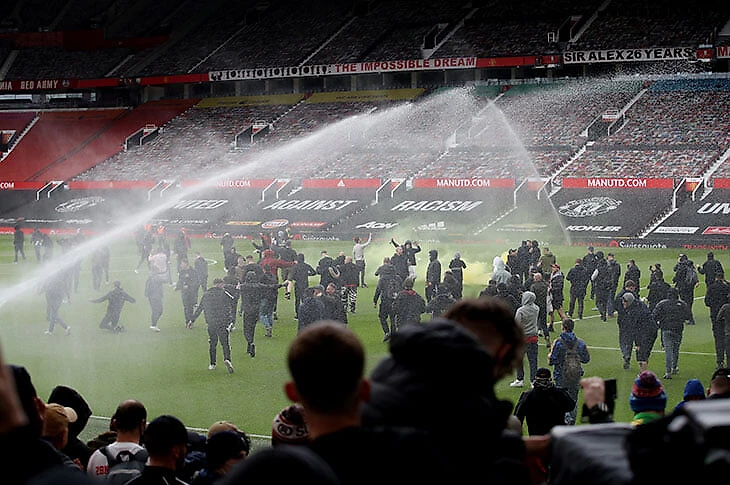 За сезон-2020/21 нулевые ничьи в матчах английских топ-клубов превратились в локальный мем: репортеры, работающие на играх вживую, радуются каждому голу на «Энфилде» или «Стэмфорд Бридж» – «ну слава богу, не 0:0». Помня довольно унылый матч первого круга, на встречу «Манчестер Юнайтед» и «Ливерпуля» коллеги тоже собирались с опаской. В реальности на «Олд Траффорд» обошлось без голов (впрочем, один, кажется, был), но это были едва ли не самые увлекательные часы за весь сезон АПЛ: протестующие против владельцев фанаты «Юнайтед» сначала отложили начало матча, а затем прорвались на стадион и заставили перенести игру.