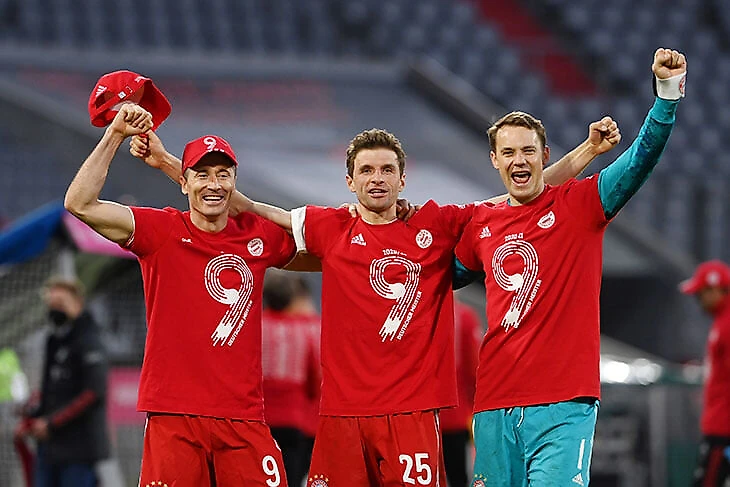 «Бавария» выиграла Бундеслигу девятый раз подряд. За юбилейным титулом мюнхенцы пойдут без Давида Алабы и Хави Мартинеса, но с новым тренером – Юлианом Нагельсманном.