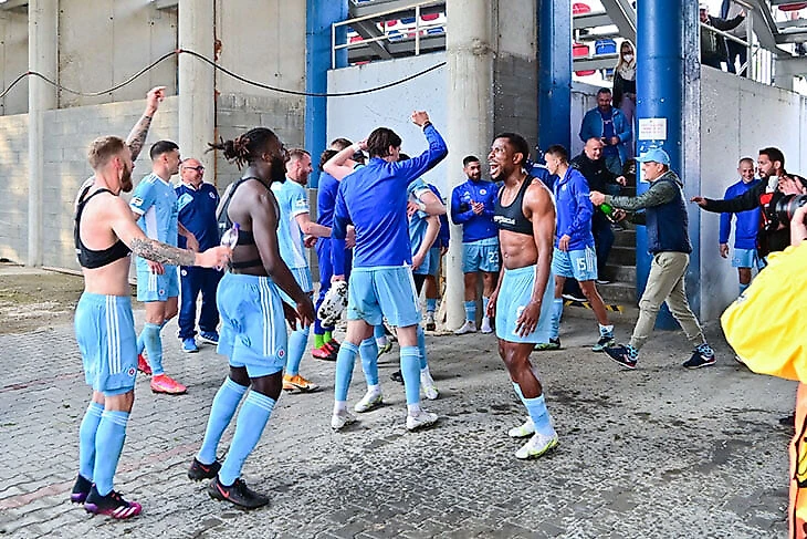 На этот раз все решилось в предпоследнем туре. Игроки несколько минут после окончания матча ждали исход игры с участием «Аполлона» – вся команда уткнулась в один смартофон, а после – бурно радовалась.