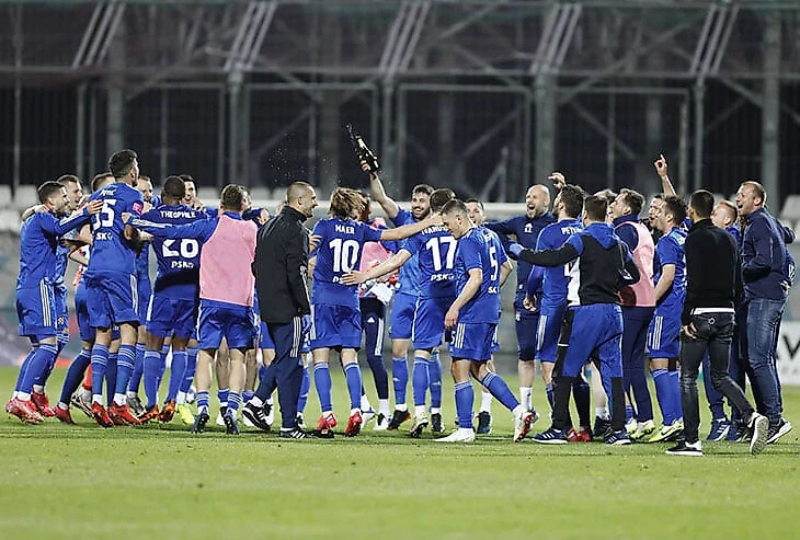 Словения - Марибор опережает Муру на 3 очка перед последним туром - и они там сыграют лично. Кстати, Мура появилась только в 2012 году, а 4 года назад играла в третьей лиге.