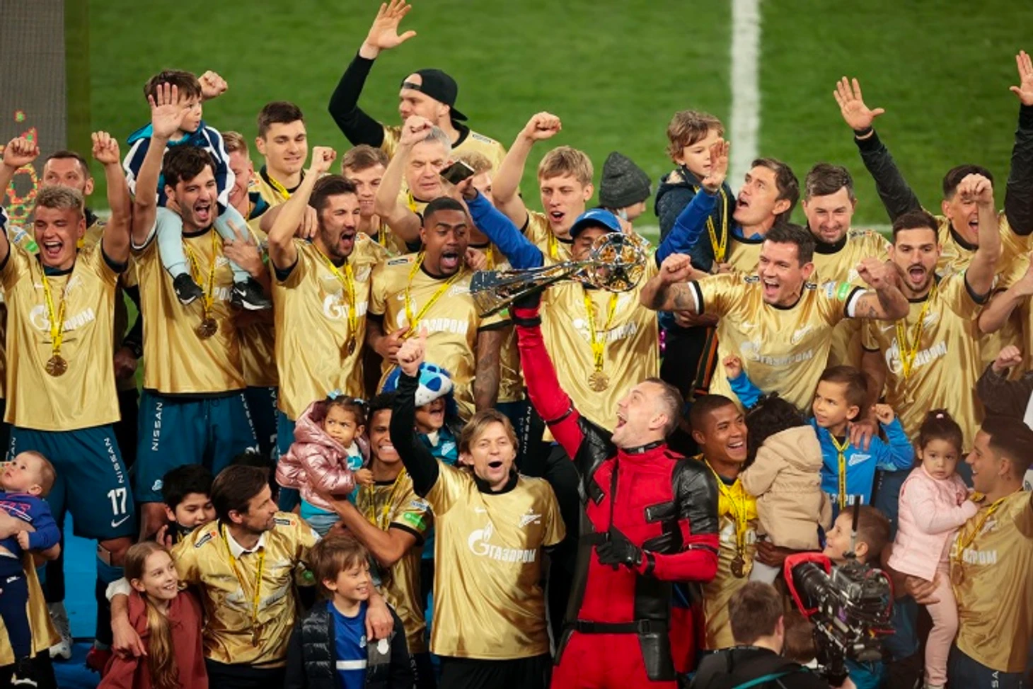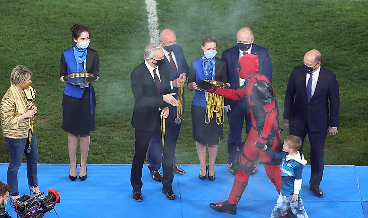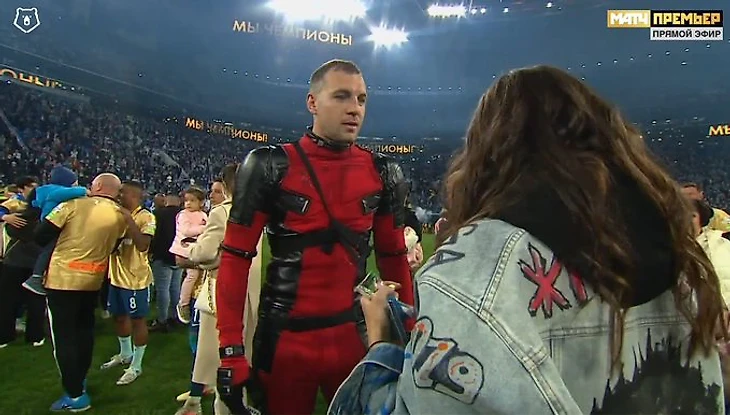 @IntChampionsCup: - Нет лучшего способа получить медаль победителя РПЛ, чем переодеться Дэдпулом с сыном.