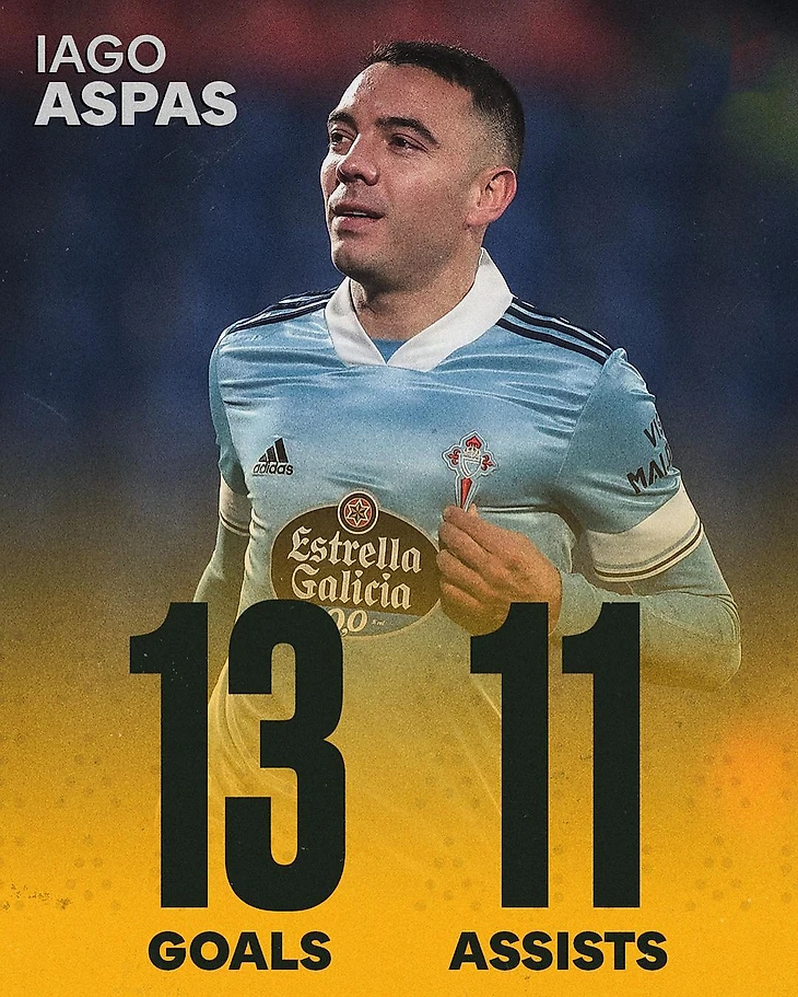 7. Яго Аспас (13 + 11)