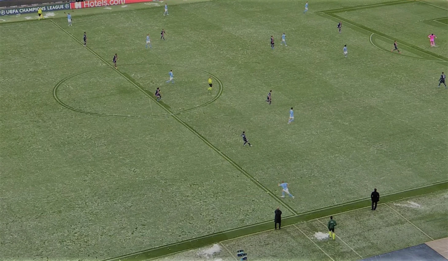 Не смотря на преимущество после гостевого матча, Сити нельзя было расслабляться или пытаться сушить игру. На кону был выход в финал Лиги Чемпионов: первый за десять лет для Гвардиола и первый в истории клуба вовсе. Обеим командам надо было забивать минимум 2 мяча, чтобы гарантировать себе хотя бы что-то: Сити - проход дальше, ПСЖ - дополнительное время без Клинского. Но команда Пепа начала не вторым, а запасным номером, и ПСЖ резво принялись расчищать снег в штрафной Эдерсона. В первые 8 минут Сити были готовы наградить целой пачкой жёлтых карточек и даже пенальти - так рвано начался первый тайм из-за снежного покрова и так изящно симулировал соперник. Возникал поврос: кто из команд первой воспользуется погодными условиями? По истечению 10 минут произошло вот это: