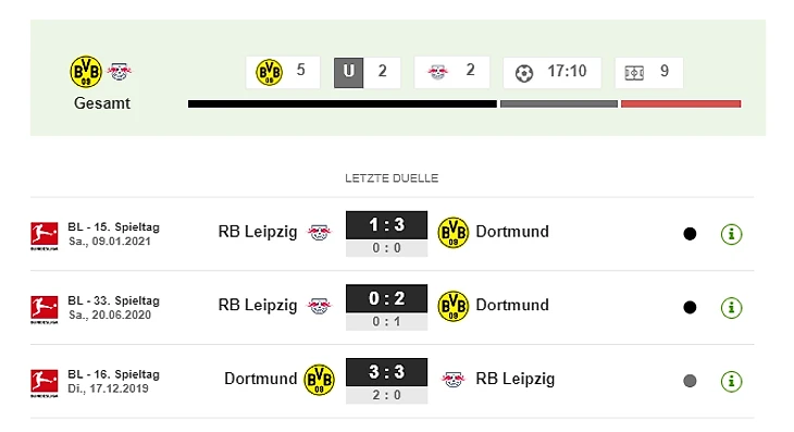 «РБ Лейпциг» не смог выиграть у Дортмунда в шести последних встречах (2 ничьи, 4 поражения).