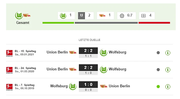 «Железные» не могут победить и сохранить свои ворота в неприкосновенности на протяжении пяти встреч с «Вольфсбургом» (2 ничьи, 3 поражения).