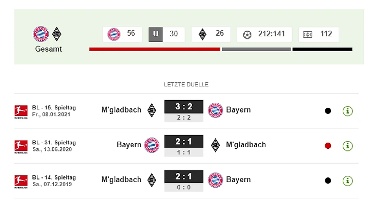 С сезона 2014/15 среди остальных Гладбах отобрал у «рекордмайстера» больше всего очков – 20 в 13 матчах;