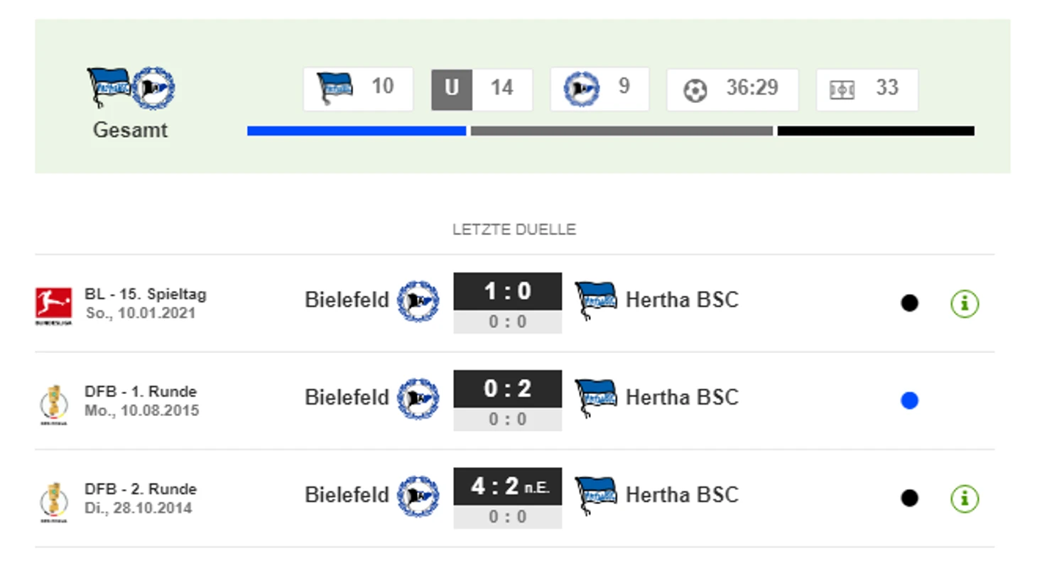 В этом сезоне «Герта» не одержала ни одной победы в трех матчах против клубов, поднявшихся в вышку (1 ничья, 2 поражения), но не потерпела ни одного поражения в последних 12 встречах с «Арминией» на домашней арене, в том числе в восьми матчах в Бундеслиге;