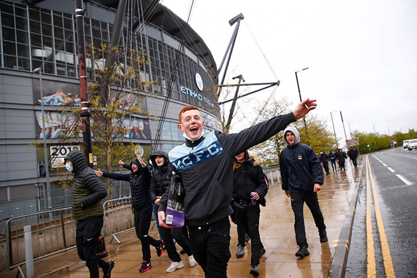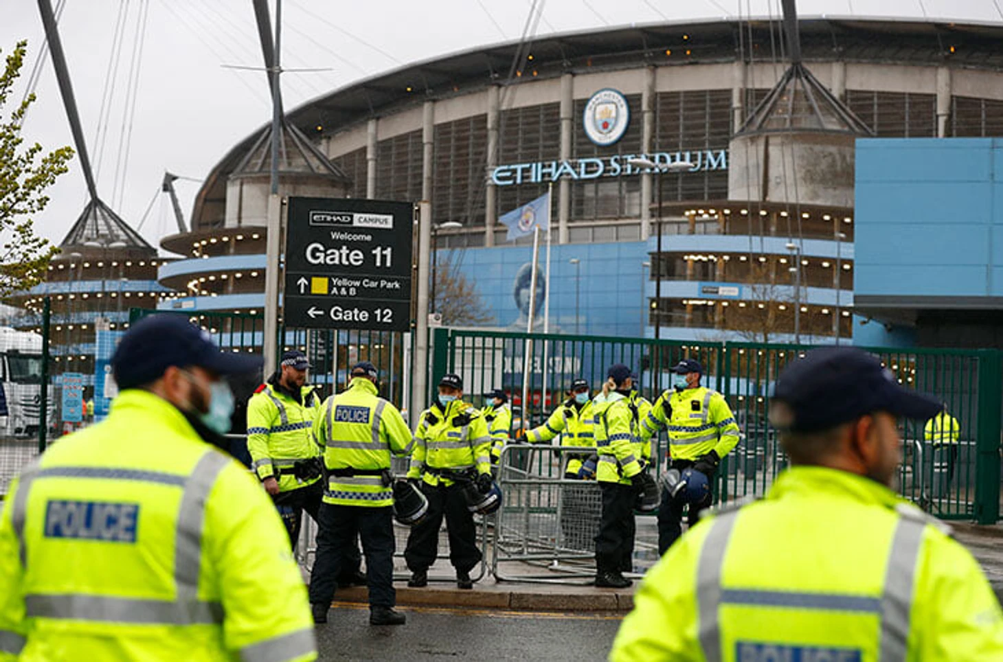 Усиленные меры безопасности были заметны везде в радиусе «Этихада». На прошлых выходных протесты сорвали матч «Юнайтед» против «Ливерпуля», так что к стадиону стянули дополнительные силы полиции и сотни лишних бордюров, ожидая если не протестов, то празднования чемпионства после матча.