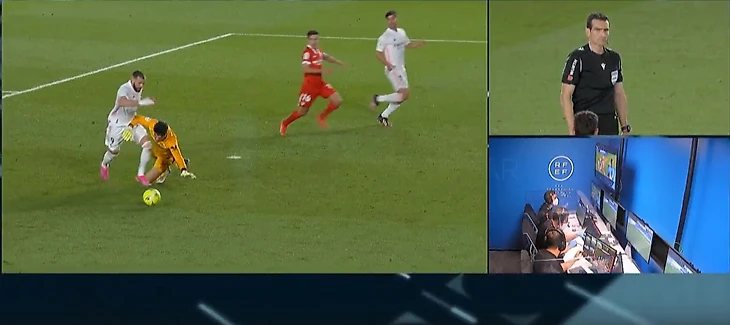Удивительная ситуация: все понимали, что сейчас будет пенальти (как минимум фол Боно был очевидным), но не понимали, в чьи ворота. Судья Хуан Мартинес Мунуэра посмотрел повтор на экране у поля и поставил 11-метровый «Реалу». Иван Ракитич сделал счет 2:1 в пользу гостей.