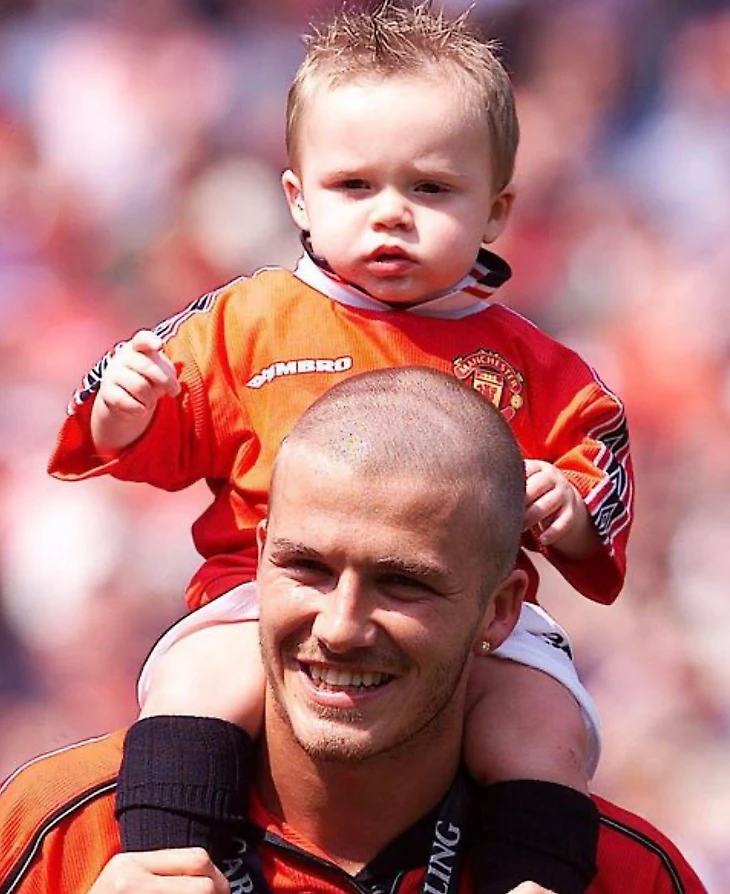 6 мая 2000 год — Дэвид и Бруклин Джозеф Бекхэм на Олд Траффорд.