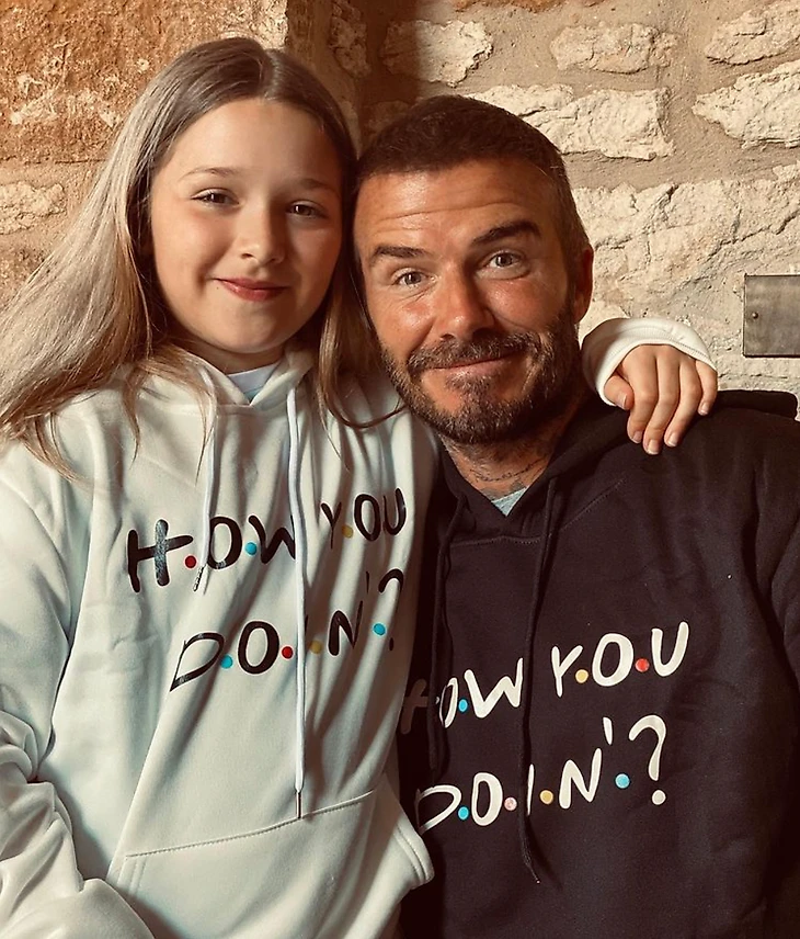 9-летняя дочь Бекхэмов — Харпер тоже присоединилась к поздравлениям. Виктория опубликовала фото девочки с отцом-именинником и передала от нее воздушный поцелуй.
