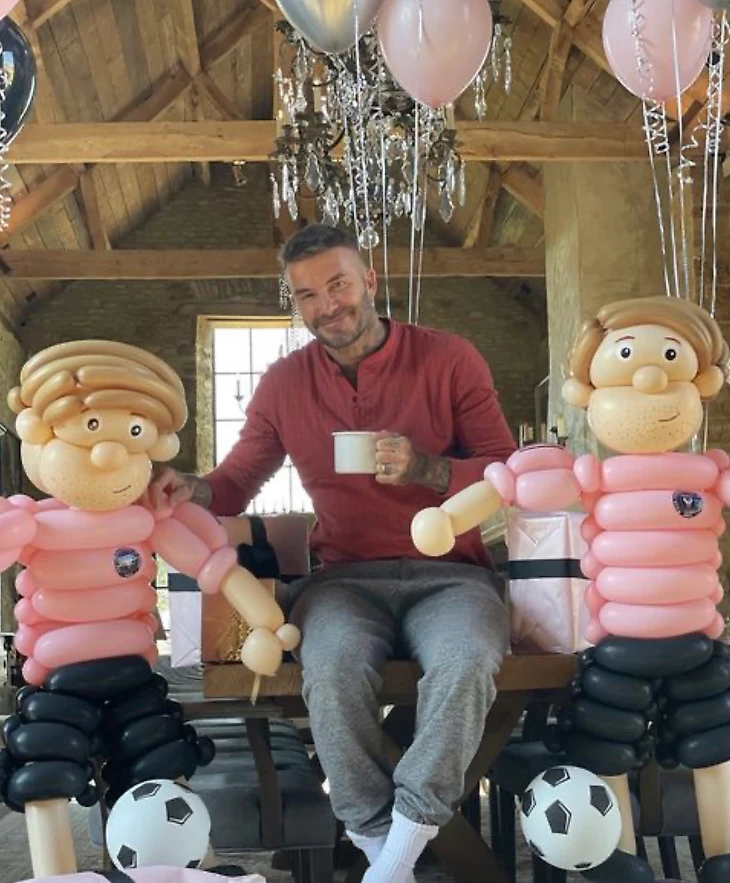 «Похоже, ты меня догоняешь!!! С днем рождения. Мы все тебя очень сильно любим», – написала супруга. Также дизайнер опубликовала фото мужа, который сидел на столе, а по бокам от него стояли футболисты, сделанные из воздушных шаров с эмблемой футбольного клуба «Интер Майами», президентом и совладельцем которого он является.