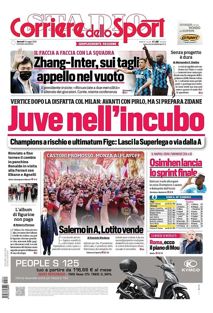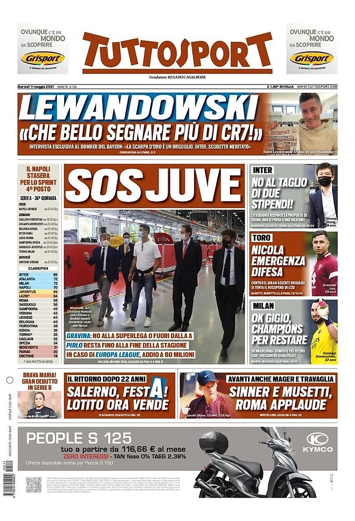 Встреча после неудачи с «Миланом»: вперёд с Пирло, но готовится Зидан. Риск Лигой Чемпионов и ультиматум FIGC: «Покиньте Суперлигу или вылетите из Серии А». Изменения на скамейке отложены до конца турнира. Роналду посетил завод Ferrari с Элканном и Аньелли.