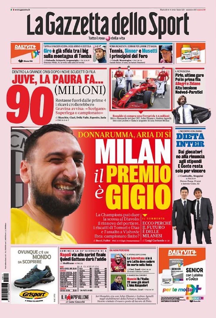 «Милан», премия – это Джиджо. Заголовки Gazzetta, TuttoSport и Corriere за 11 мая