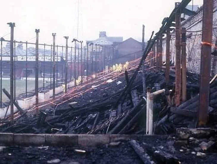Трагедия произошла на 40-й минуте первого тайма. Её причиной послужил брошенный кем-то непотушенный окурок. Стадион был построен почти 80 лет назад и был полностью деревянный, и сигарета, провалившись в щель между досками, упала на скопившийся под трибуной мусор.