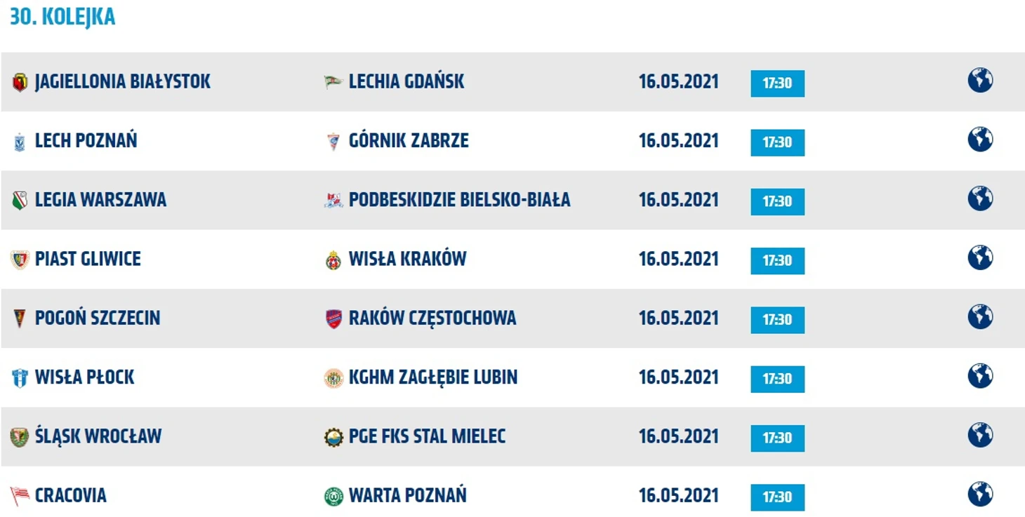 Экстракласа приближается к развязке, в минувшие выходные прошёл предпоследний тур чемпионата. Одной интригой стало меньше - медали уже распределены, очный матч «Погони» и «Ракува» в 30-ом туре потерял интригу, зато по-прежнему все пять клубов, как и раньше, претендуют на еврокубки, да и «Подбескидзе» при определенных раскладах может подняться с последней строчки.