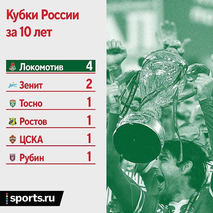• У «Локо» классный кубковый график – победа каждые два года: 2015-й, 2017-й, 2019-й, а теперь и 2021-й. Эти промежутки дважды заполнял «Зенит» (2016-й и 2020-й), еще раз – уже несуществующий ФК «Тосно».