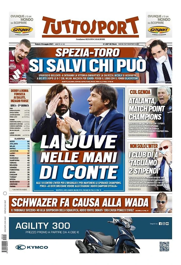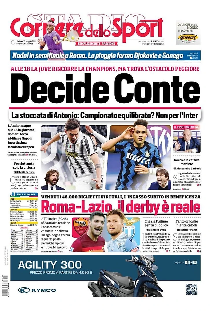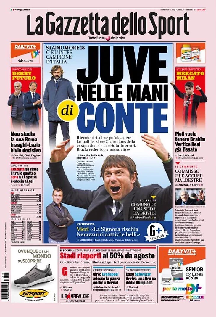 Решает Конте. Заголовки Gazzetta, TuttoSport и Corriere за 15 мая