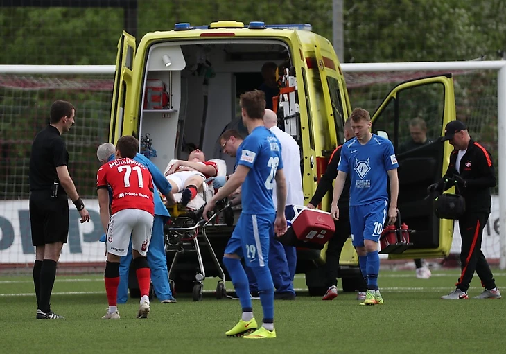 Ключевой момент. В самом начале встречи мяч после мощнейшего удара чертановца попал точно в челюсть Даниилу Денисову, и наш полузащитник был отправлен в глубокий нокаут. Ему оказали первую помощь, а через восемь минут увезли с поля на машине скорой помощи. Вскоре Даниил пришел в себя, а затем был отправлен на обследование. Желаем Дэну скорейшего выздоровления!