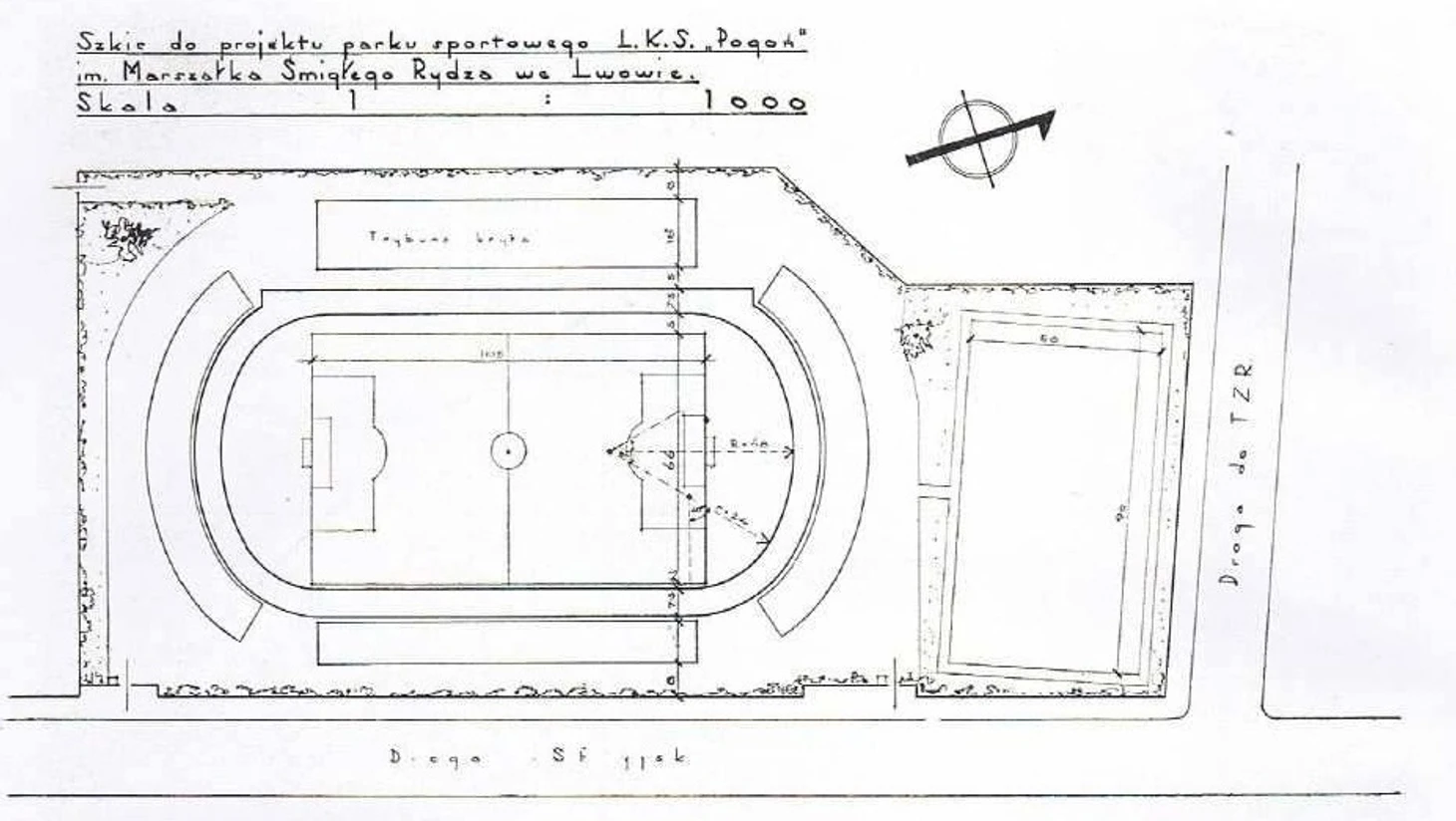 Несмотря на откровенно неважные межнациональные отношения между поляками, евреями и украинцами, неоднократно выливавшиеся в столкновения и провокации, стадион Погони не пострадал в результате взаимных поджогов двух других соседних арен, арены "Сокола-Батька", она же Украинский Город, она же Украинский Майдан (домашней арены клуба Украина) и стадиона другого этнически польского клуба Чарни.
