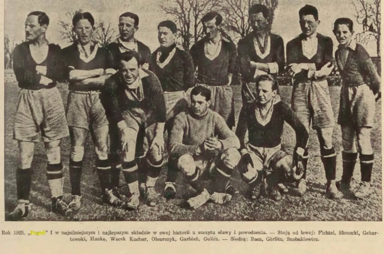 Тренер той команды - австриец Карл Фишер. Состав по матчу финального этапа с Краковией: Хачевски - Олеарчик, Игнарович - Вотак, Вуйчицкий, Гулич - Юрас, Бач, Кухар, Гарбень, Слонецкий. Обращает на себя внимание интереснейшая по нынешним временам расстановка 2-3-5. Вацлав Кухар - лучший бомбардир с 21 голом, на 7 мячей от него отстал Мечислав Бач, без которого та Погоня тоже немыслима.