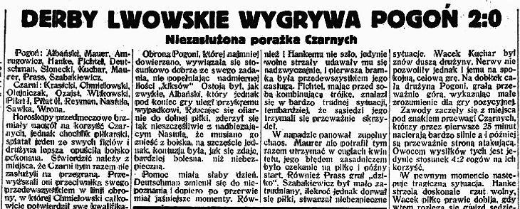 Через неделю Погонь уступает и Варте из Познани, и это при том, что к 35 минуте львовяне ведут 2:0 (отличились Бач и Вацлав Кухар), но победный счет удержан не был, более того, уступили 2:3. Вообще в том сезоне стопроцентный результат был достигнут лишь с ЛКС, 2:0 и 6:1 не дадут Погони осесть на дне, а победа над Вартой (7:0) едва не вывела Львов на третью строчку... Однако Вацлав Кухар становится вторым снайпером чемпионата, лишь на один гол отстав от Юзефа Калюжи из Краковии, сохранившей чемпионский титул. До великой эпохи чемпионств осталось совсем недолго!