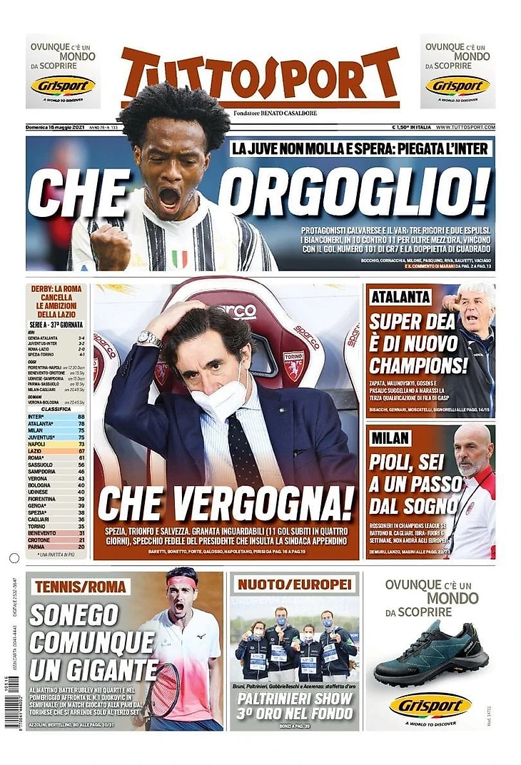 Надежда на Куадрадо. Заголовки Gazzetta, TuttoSport и Corriere за 16 мая