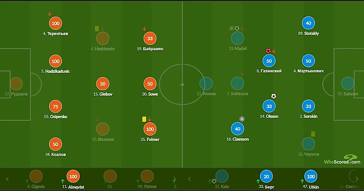 Выбирать лучшего игрока, субъективное занятие, назову двоих, по-моему, были шикарны Классон (больше всех пасов под удар и самый большой показатель хА из игроков Краснодара) и Кабелла (больше всех отборов в матче и самый большой процент успешных передач).