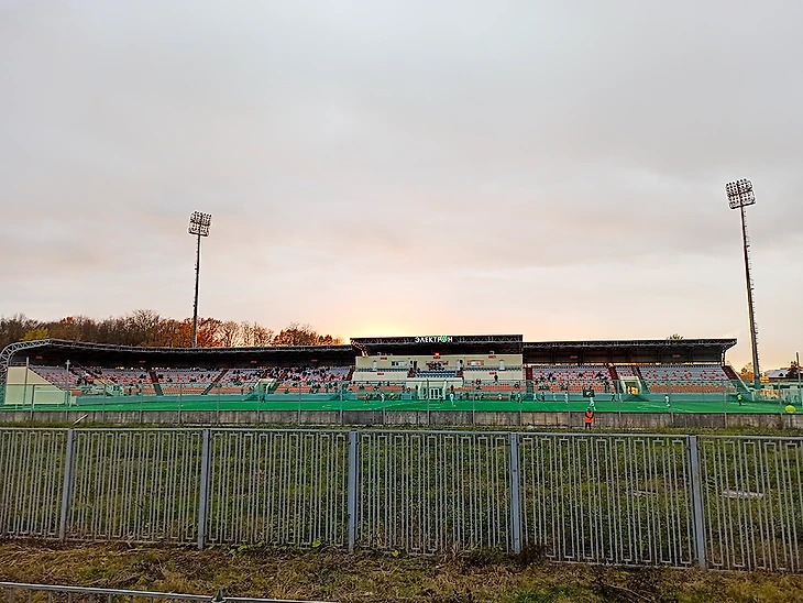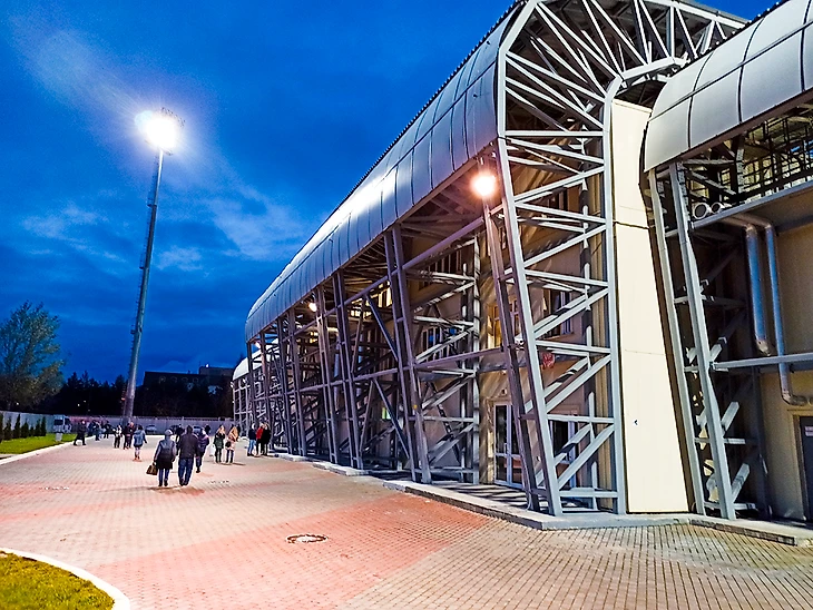 Этот стадион привлекал меня своей незавершенностью: у него есть главная трибуна, есть угловая и маленький кусочек за воротами, остальное строить передумали. Это напоминает мне разноуровневые британские стадионы типа Сент-Джеймс Парк, Селтик Парк, Олд Траффорд, Энфилд.