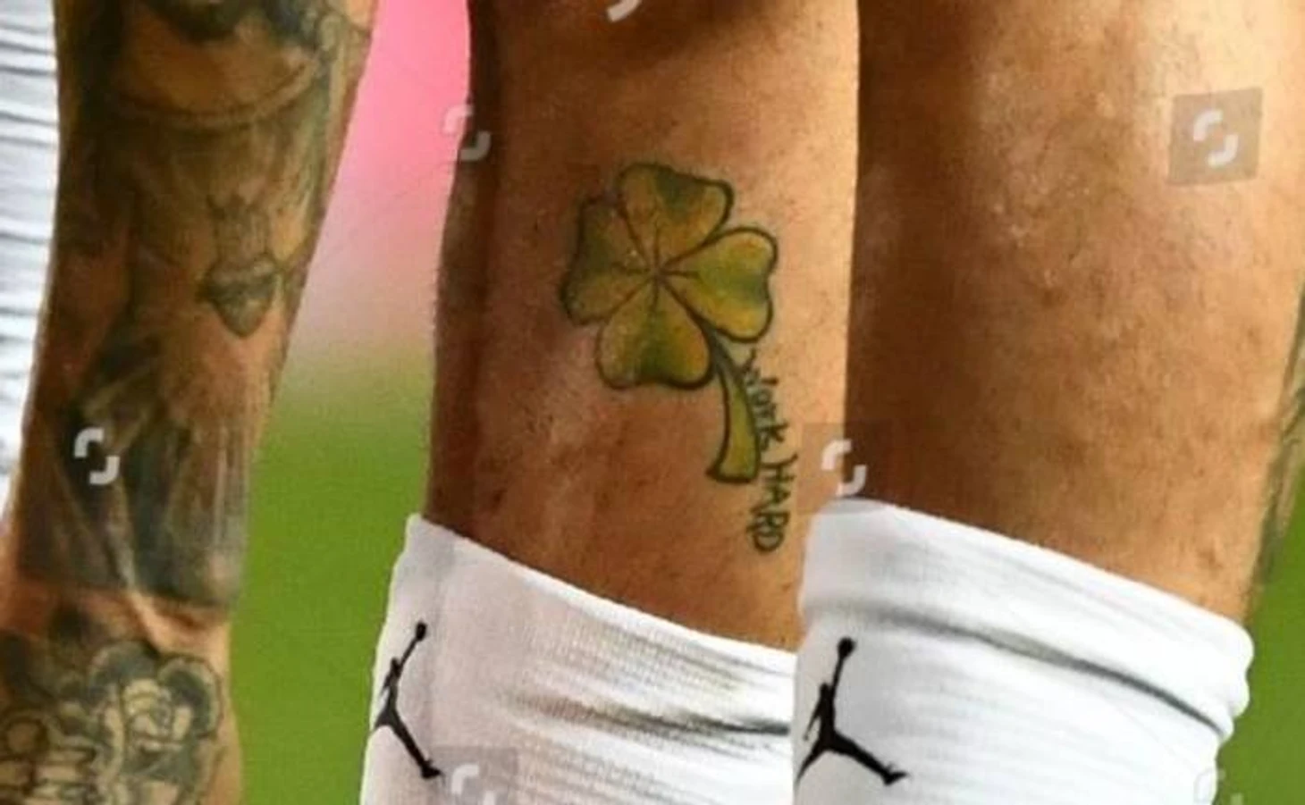 На правой ноге ниже колена Алвес сделал тату четырехлистного клевера – символа удачи.