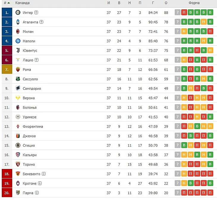 Интеру уже как неделю можно накрывать на стол, разливать душистые вина из флорентийских погребов, наслаждаться лазаньей, да даже отведать фирменную карбонару, сделанную руками самого Джейми Оливера. Они могут себе это позволить, так, как они - чемпионы! Порадуемся за них и перейдем к другим, менее удачным клубам.