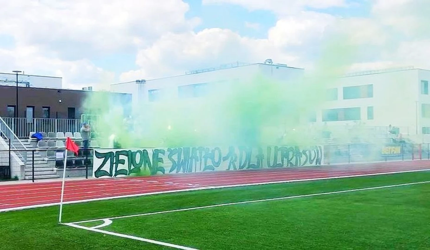 Одна из варшавских лиг и оправа «Зелёный свет - для ультрас» фанатов «Таргувека» на матче против «Виктории».