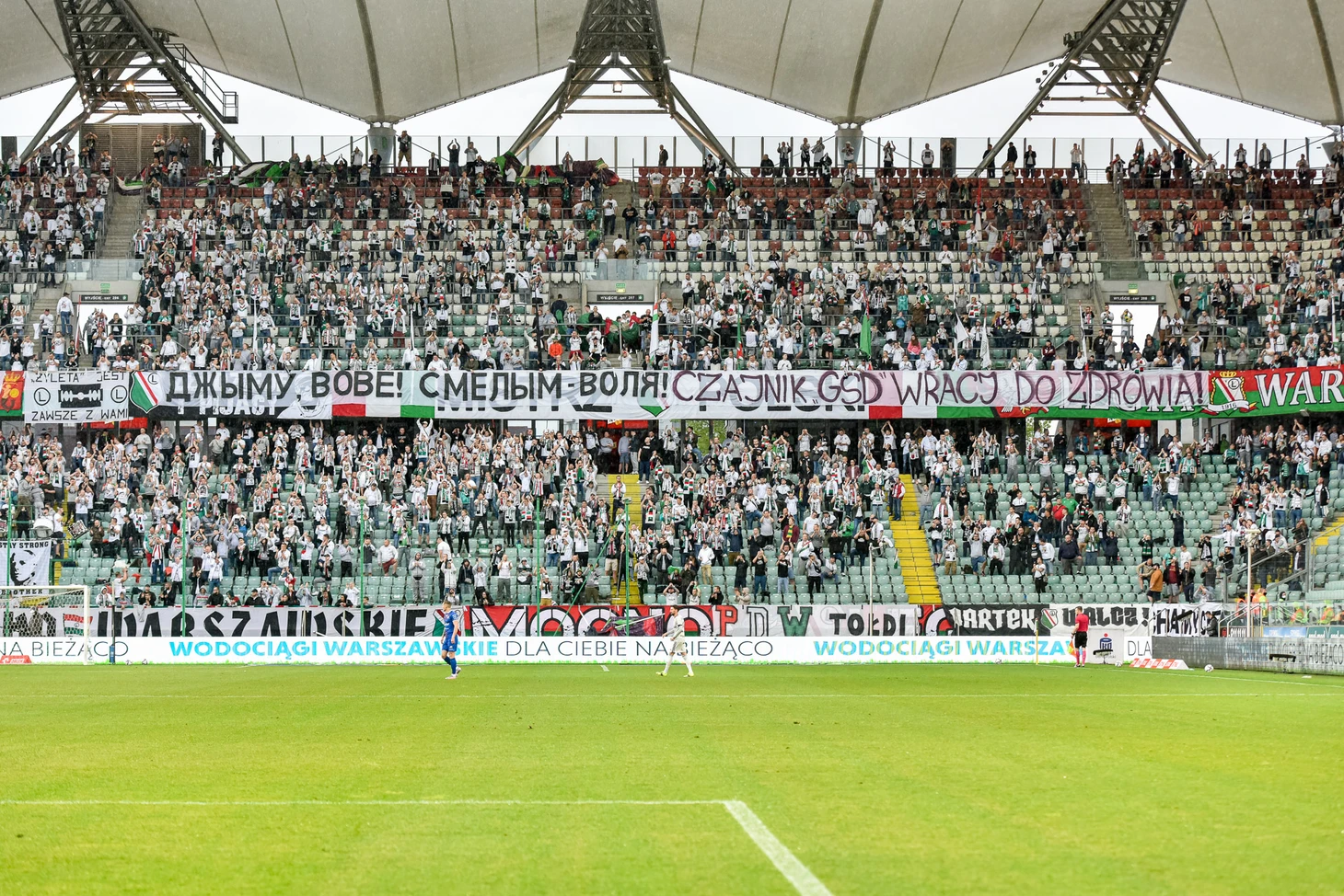 Фанаты «Легии», вернувшись на трибуны, отмечали чемпионство своей команды. К матчу против «Подбескидзе» были подготовлены две оправы. Первая появилась на выход игроков на поле и состояла из секторувки и баннера, которые вместе составляли общий посыл «And still waiting». К флагам вокруг секторувки была добавлена пиротехникав цветах клуба.