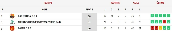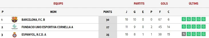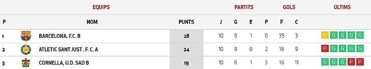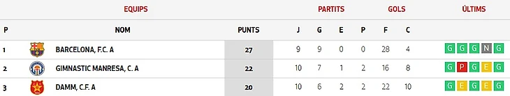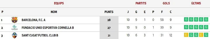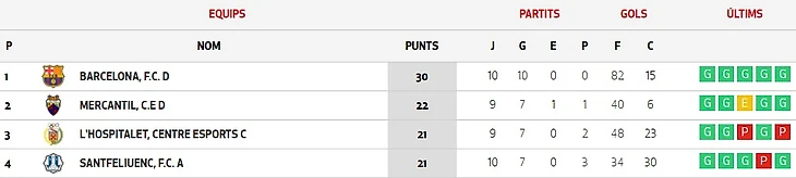 Сыграны 22 тура из 23. На первой стадии «Барселона» проиграла оба матча «Эспаньолу». В последнем туре все решится в матчах «Серданьола» - «Барселона» и «Настик» - «Эспаньол».