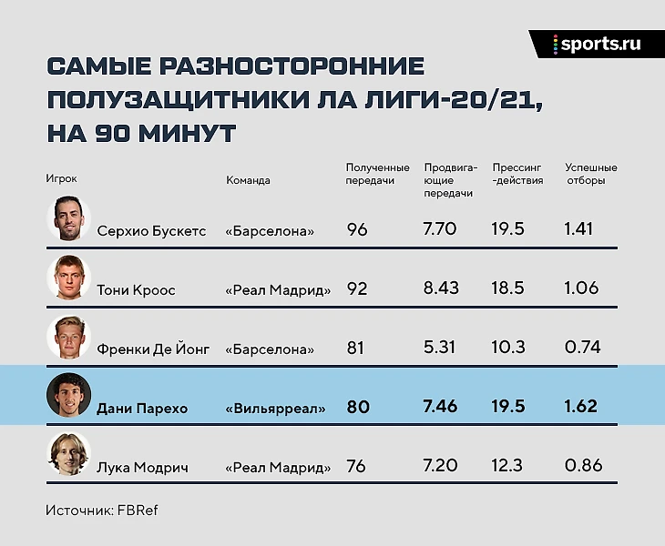 Парехо – лидер «Вильярреала» по количеству касаний мяча. Он не только определяет вектор развития каждой атаки, но и активен в прессинге – по прессинг-действиям и отборам мяча он тоже лучший в команде. Парехо свободен и успевает делать на поле все: