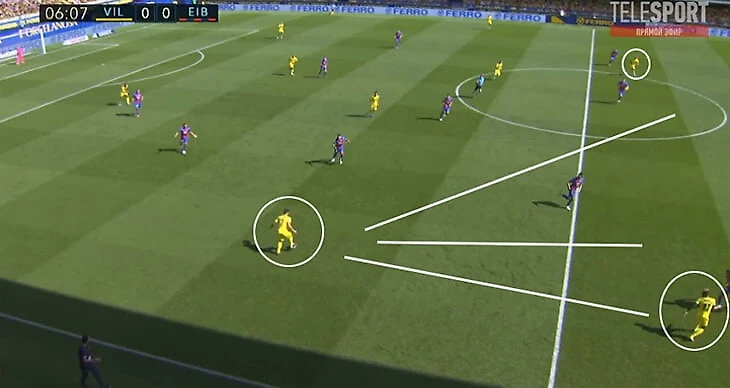 Пример из матча с «Эйбаром»: Морено смещается глубже на правом фланге.