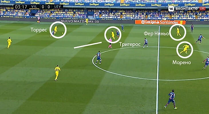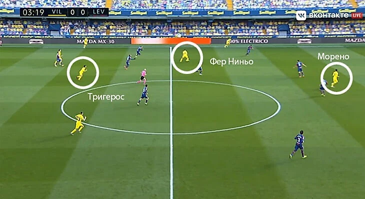 С помощью вариативности игроков (Чуквуэзе, Гомеса и Тригероса) Эмери выстраивает всю игру в атаке. Акцент на такие действия Тригероса и глубокую позицию Морено дает результат – «Вильярреал» стал одним из самых атакующих клубов Ла Лиги-20/21: