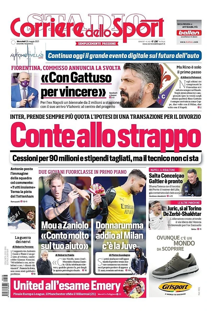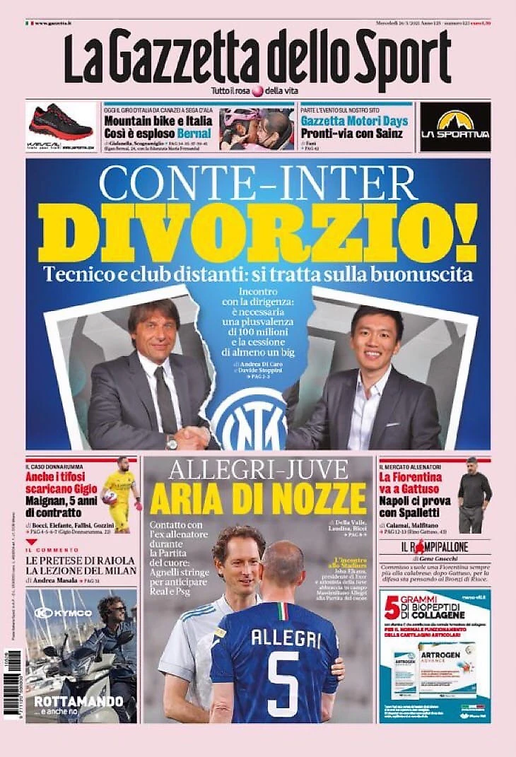 Конте-«Интер»: расставание! Заголовки Gazzetta, TuttoSport и Corriere за 26 мая