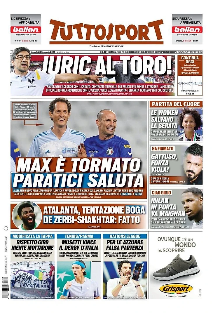 Аллегри снова на «Стэдиуме» из-за матча в пользу борьбы с раком: готово соглашение по его возвращению в «Юве». Глава спортивного сектора покидает пост в пользу Керубини. УЕФА: готовится наказание для «Юве», «Реала» и «Барсы».